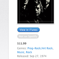 Add a Spotify link and embedded player on iTunes album/artist pages