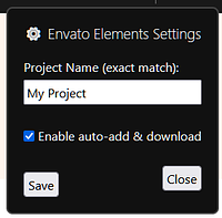 Automatically selects your configured Envato Elements project and triggers “Add & Download” in the modal. Defaults to “My Project”—be sure to configure!