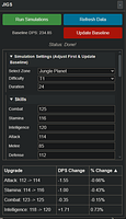 3. The JIGS panel will appear in the bottom-right. After the website's initial simulation finishes, the script will automatically capture your Baseline DPS.