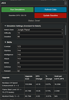 Understanding RNG Variance: Due to the random nature of combat (RNG), you may sometimes see a small negative DPS change for what should be a clear upgrade. This is normal for short simulations. To get more accurate results, you can increase the simulation duration in the 'Simulation Settings' section to create a larger sample size.