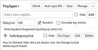 - **One-click auto typing**: click a text field and TinyTyper+ types the selected snippet automatically