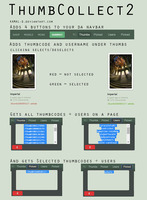ThumbCollect is a script for Deviantart that allows you to quickly collect the thumbnail codes and/or usernames from most places on the site.