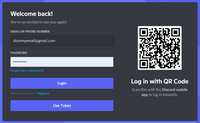 Adds a new blue button labeled 'Use Token' to the discord login page.