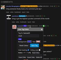 This UserScript allows the addition of customisable tags onto OzBargain users and track cumulative votes against them.
