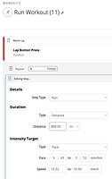 • when editing a step, if a pace target is selected, speed input fields will be shown along side the pace input fields