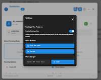- Click Start Farming — monitor live stats and stop at any time with the UI button.