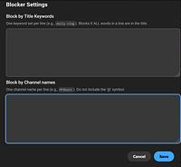 Blocks videos by title keywords and channels (Right-click to select channel)