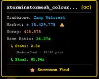 Quickly decide whether to sell or scrap your loot with an enhanced color-coded system and detailed floating infoBox – now featuring dynamic stats-based multipliers, progressive scrap value boosters, intelligent tradezone management, and revamped calculation formulas for mastercrafted items!