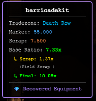 Items are highlighted according to their final Market Price / Scrap Value ratio (with all multipliers applied):